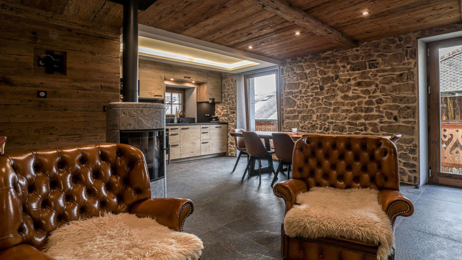 Some of the many highlights include a fully equipped kitchen, a wood burning stove, a balcony and two outdoor parking spaces.