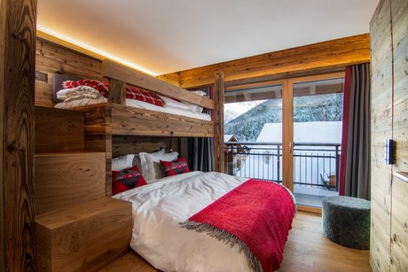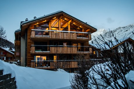 Dieses wunderschöne, lichtdurchflutete Penthouse kombiniert luxuriöse Oberflächen, hochwertige Möbel und besondere Beleuchtung zu einem modernen alpinen Zuhause in Saas Fee.