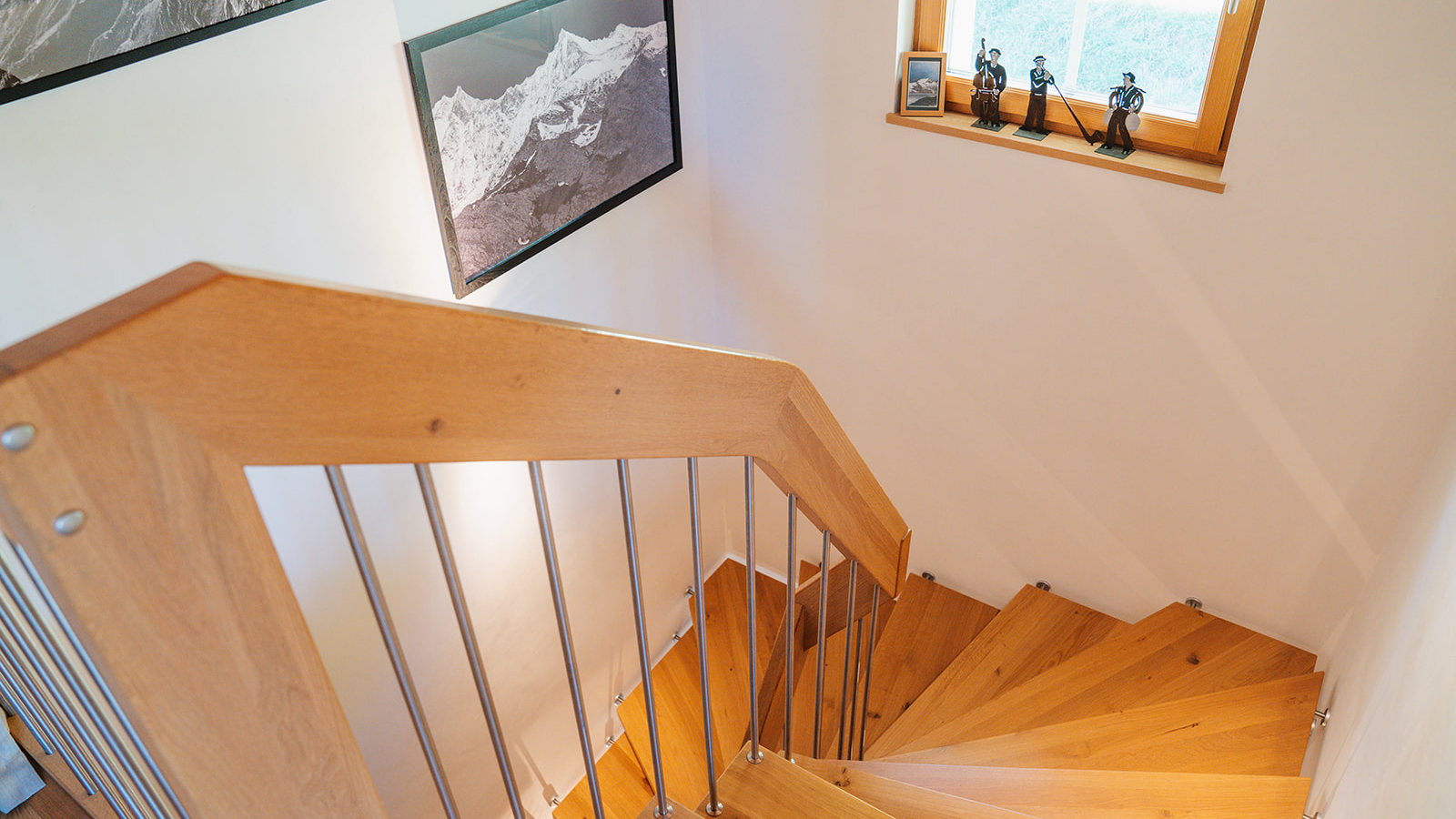 Multiple balconies then offer panoramic views of the village below and towering mountain peaks and glaciers above.