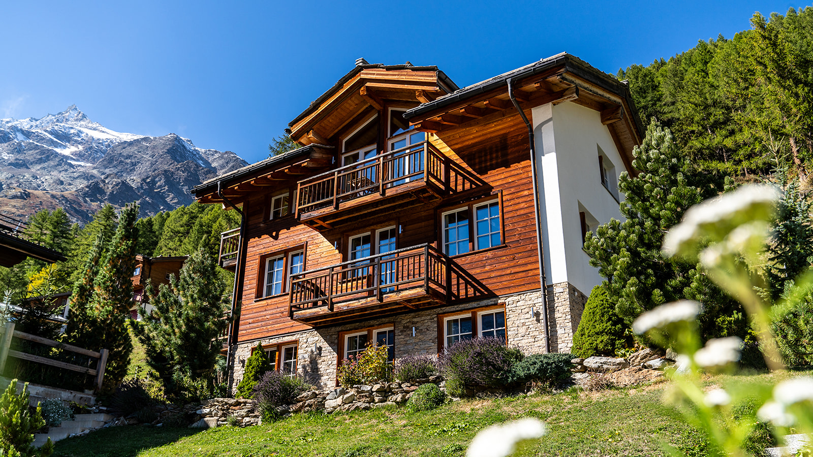 Situated in an elevated position above Saas Fee and just a short five minute walk to the centre is the very impressive Chalet Lapin Blanc.